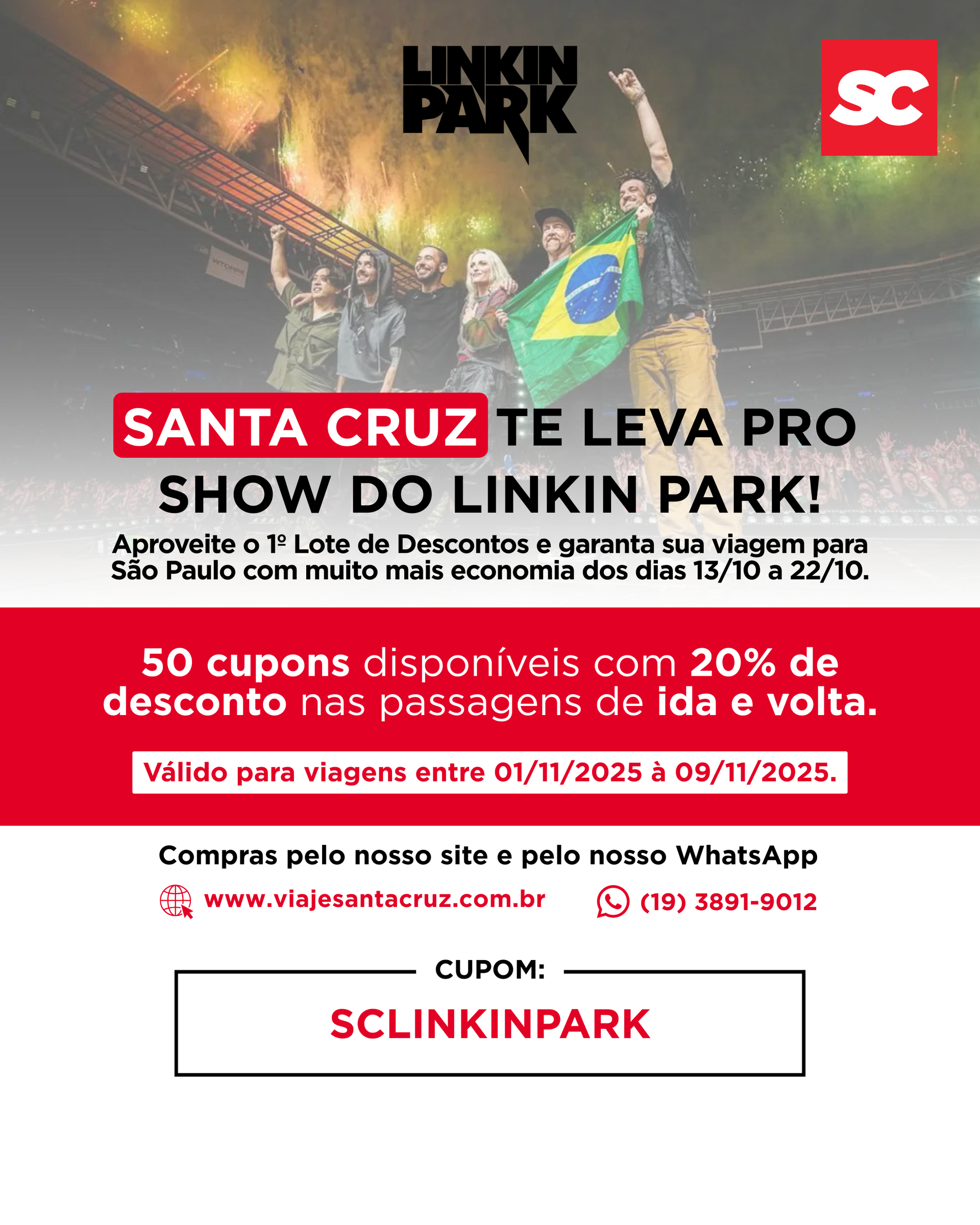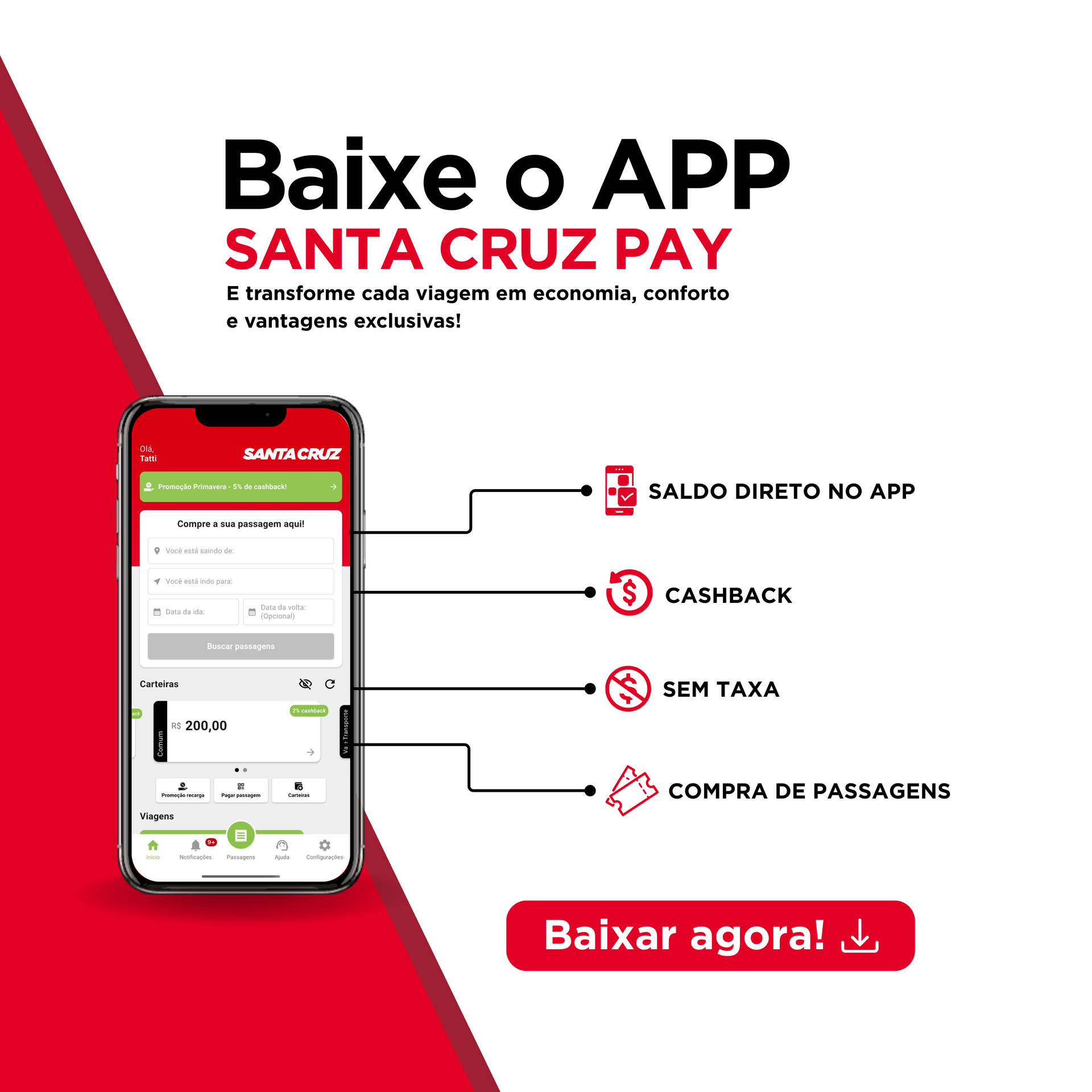 Compre sua passagem de ônibus e escolha a excelência em viagens de ônibus. Com uma variedade de destinos, como Alfenas, Botucatu, São Paulo, Campinas, Itajubá, Jaú, Poços de Caldas, Pouso Alegre, entre outros, nos comprometemos em levá-lo ao seu destino com toda a qualidade. Nosso compromisso com a excelência é evidente em cada detalhe, desde nossa frota de ônibus novos até nossas poltronas confortáveis. Diferenciamo-nos em proporcionar comodidade e conforto aos nossos clientes, permitindo que adquiram suas passagens sem sair de casa e desfrutem de viagens em ônibus equipados com tecnologia de última geração. Nossos valores fundamentais incluem comprometimento, cuidado e conexão. Escolha a Viação Santa Cruz e desfrute de uma jornada de qualidade e tranquilidade. Não perca mais tempo! Reserve já sua passagem de ônibus e descubra o que há de melhor no transporte rodoviário. Vamos juntos nessa aventura?